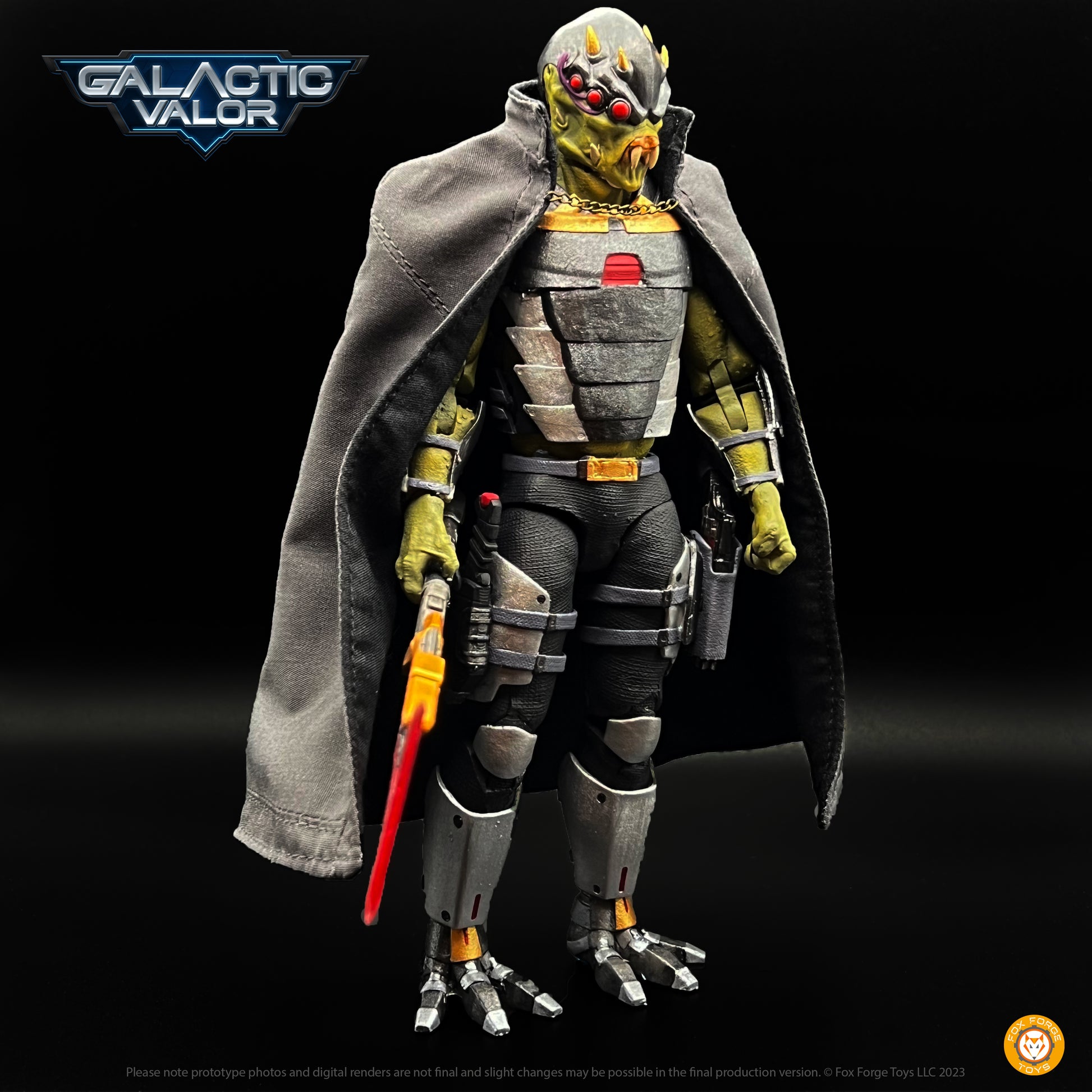 Galactic Valor™ is an immersive sci-fi action figure line created by Fox Forge Toys LLC. It features the many twists and turns that occur in the Corthix System, home to Grishk, Tygron and countless other alien races.