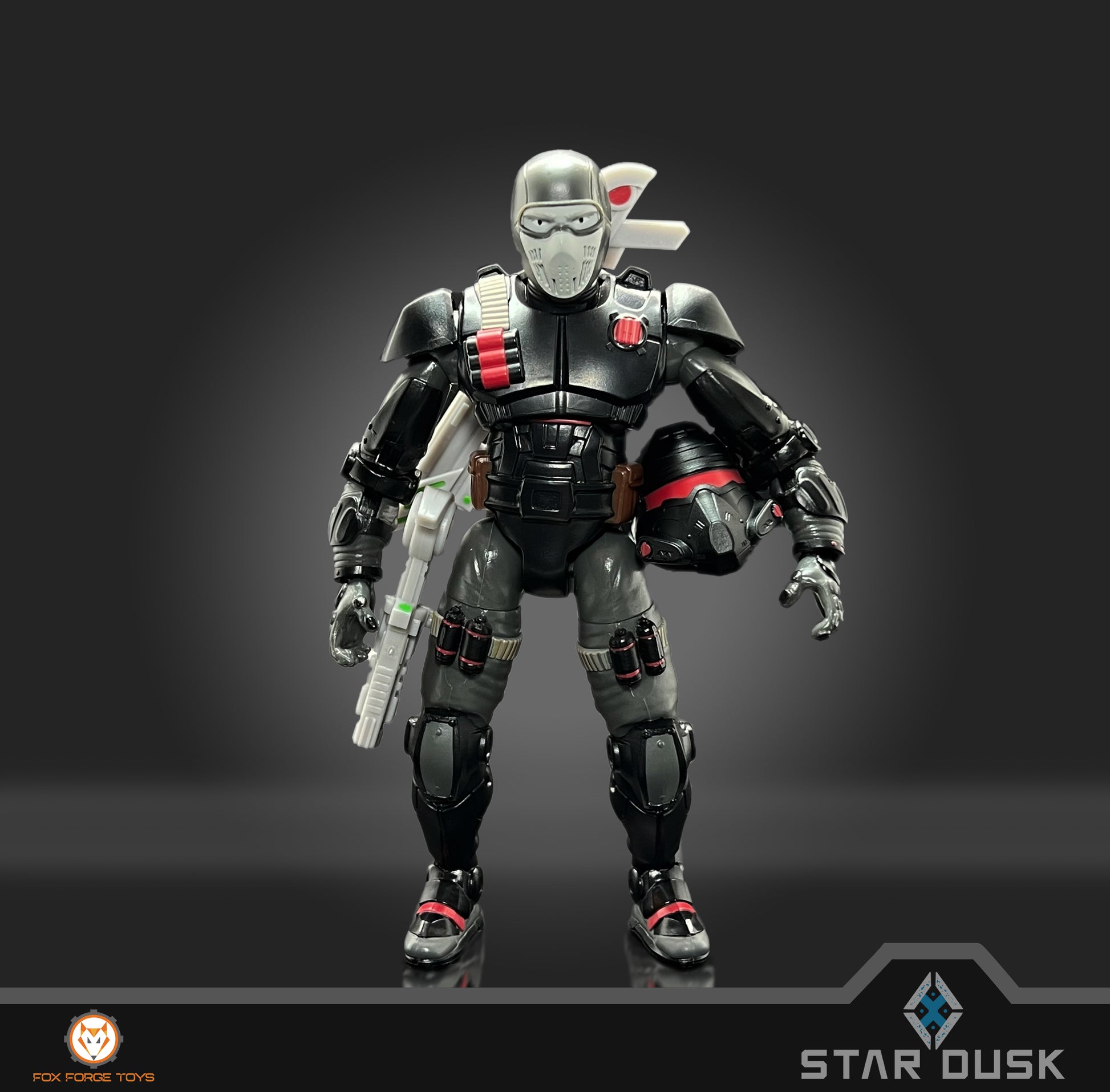 As part of the STAR DUSK premium 1/12 scale collection, the Dread Ops Legionnaire comes in at 6 inches and fit for display, play action, or the mint-in-box collector! The Dread Ops Legionnaire is fully loaded with 30 points of articulation, hinged shoulder pads, a removable helmet, and a set of original weapons.